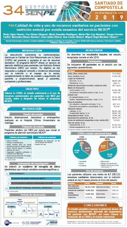 Calidad de vida y uso de recursos sanitarios en pacientes con nutrición enteral por sonda usuarios del servicio NEXO®