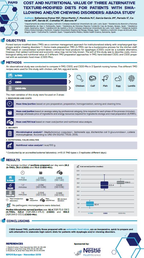 Cost and nutritional value of three alternative texture-modified diets for patients with swallowing and/or chewing disorders: Abadia Study