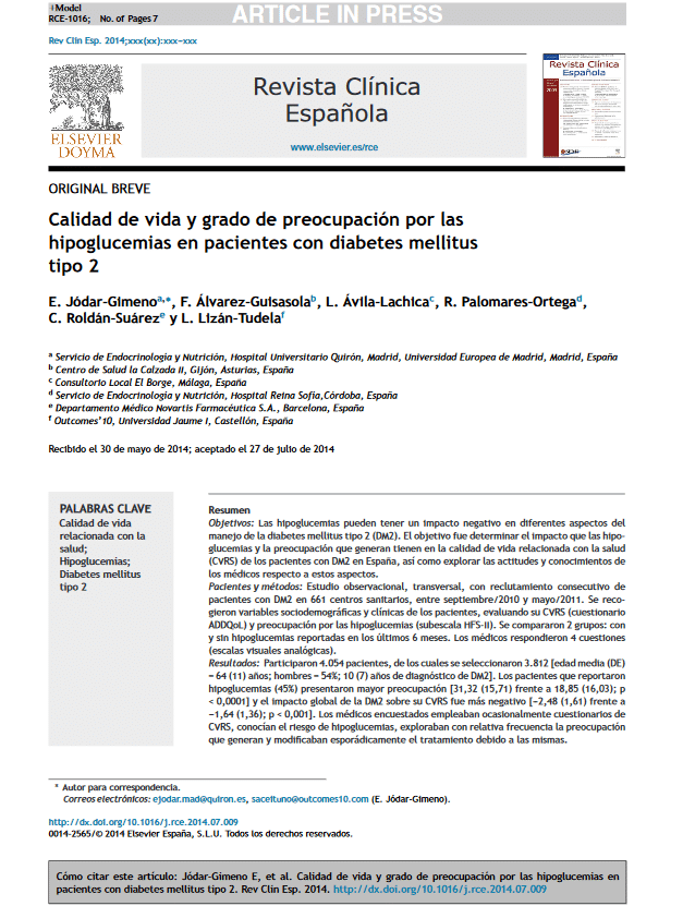 Calidad de vida y grado de preocupación por las hipoglucemias en pacientes con diabetes mellitus tipo 2