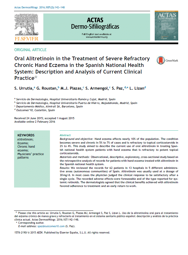 Oral alitretinoin for the treatment of severe, refractory chronic hand eczema, in the Spanish public healthcare system: description and analysis of the current clinical practice