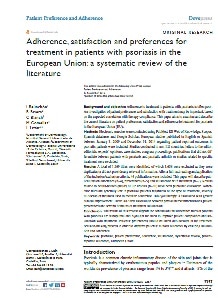 Articles Adherence, satisfaction and preferences for treatment in patients with psoriasis in the European Union: a systematic review of the literature Authors: Belinchón I, Rivera R, Blanch C, Comellas M, Lizán L Journal: Patient Preference and Adherence Reference: Patient Prefer Adherence. 2016;10:2357-2367 Outside URL