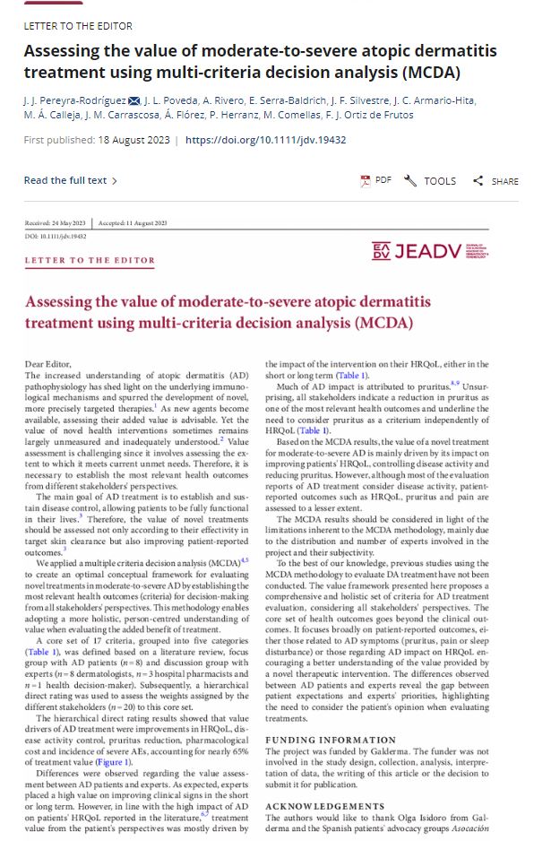 MCDA to create an optimal conceptual framework for evaluating novel treatments in moderate-to-severe AD by establishing the most relevant health outcomes (criteria) for decision-making from all stakeholders’ perspectives (patients, clinicians and payers).