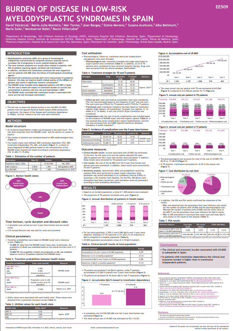 Development of an economic model to evaluate the burden of myelodysplastic syndromes over 5 years. Results are obtained in terms of cost and clinical benefit in transfusion-dependent and transfusion-independent patients.
