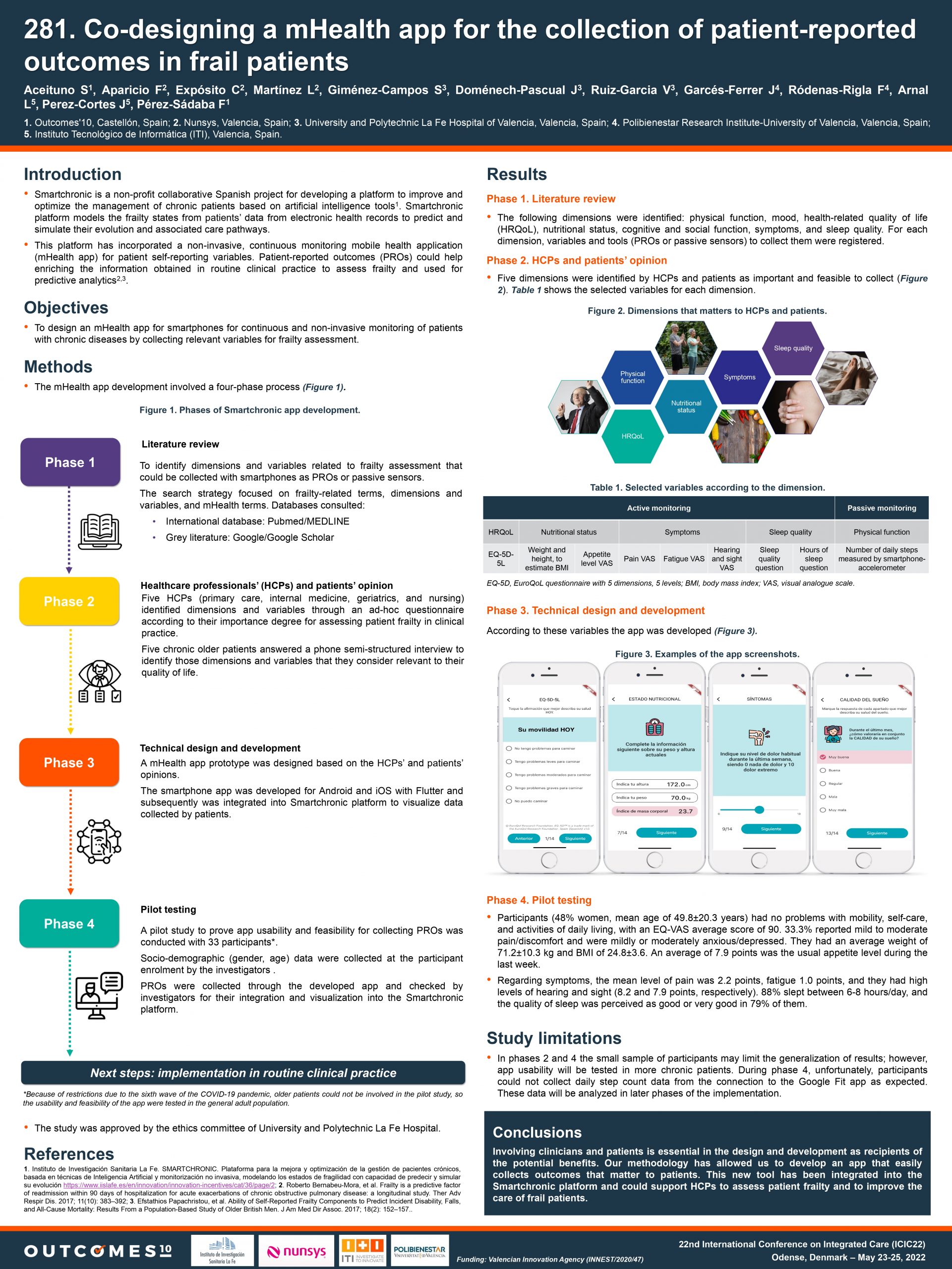 Involvement of clinicians and patients in the design and development of a mobile application for the collection of patient-reported outcomes (PROs) in the frail population, within the framework of the Smartchronic project.