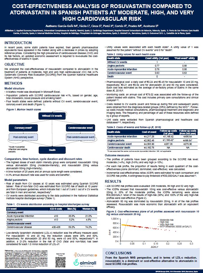 Congress Cost-effectiveness analysis of rosuvastatin compared to atorvastatin in spanish patients at moderate, high, and very high cardiovascular risk Authors: García-Goñi M, Fácila L, Cinza S, Pintó X, Cortés X, Prades M, Aceituno S Year: 2018 Congress: ISPOR Europe 2018 Download PDF