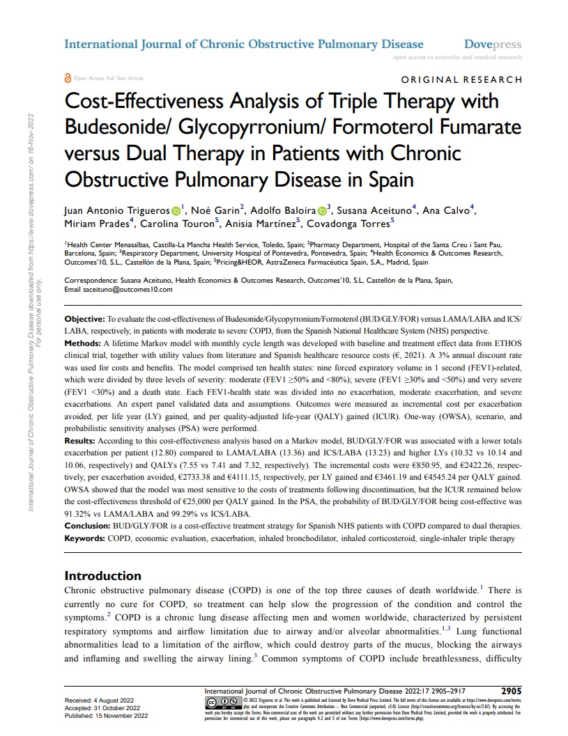 Cost-effectiveness analysis of triple therapy Budesonide/ Glycopyrronium/ Formoterol fumarate versus dual therapies LAMA/LABA and ICS/LABA in COPD patients from the perspective of the Spanish National Health System.