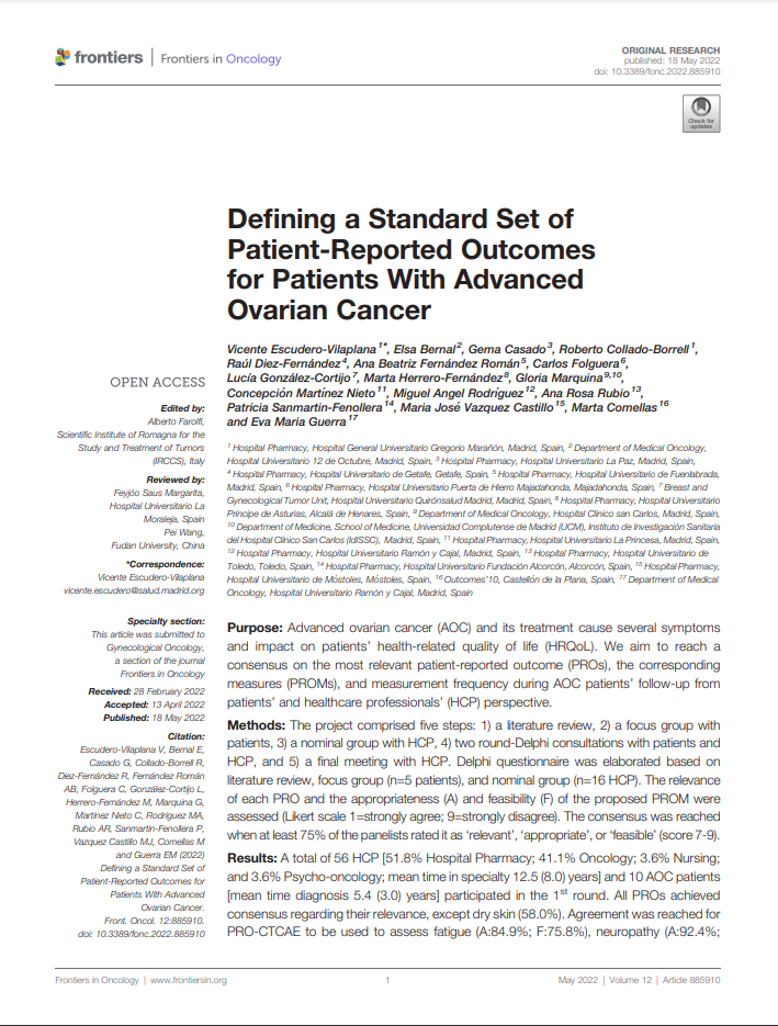 Definition of the standard set of patient-reported outcomes (PROs) and the corresponding measures (PROMs) for patients with advanced ovarian cancer follow-up.