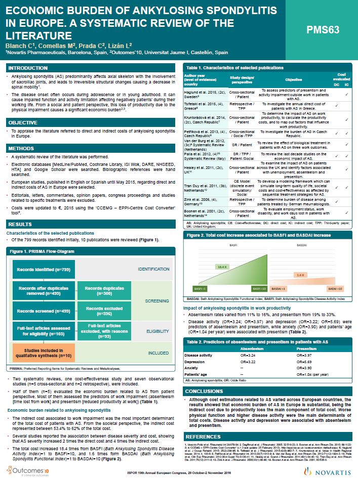 Congress Economic Burden of Ankylosing Spondylitis in Europe. A systematic review of the literature Authors: Blanch C, Comellas M, Prada C, Lizán L Year: 2016 Congress: ISPOR 19th Annual European Congress Download PDF