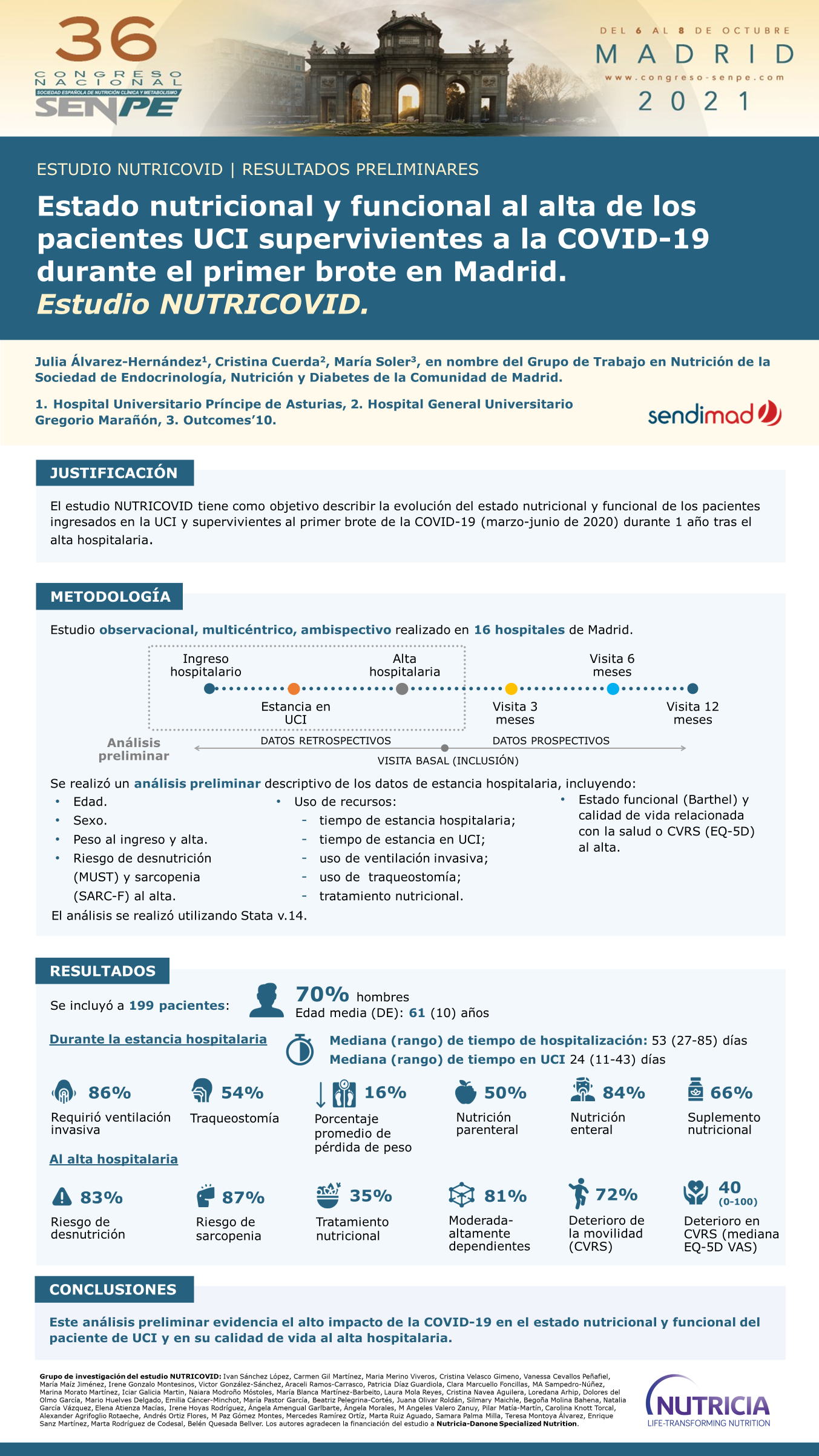 Preliminary results at hospital discharge on the nutritional and functional status of COVID-19 patients surviving the first wave of the pandemic. Study promoted by SENDIMAD, funded by Nutricia-Danone Specialized Nutrition.