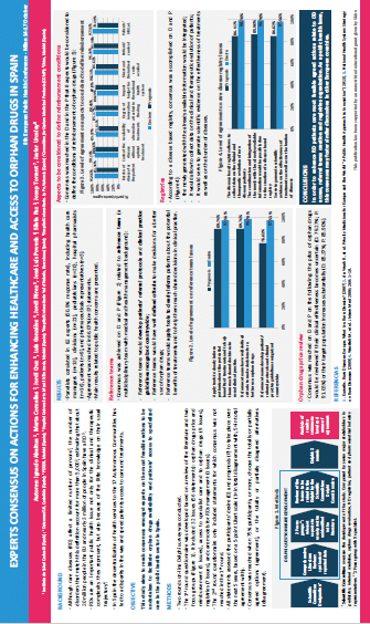 Congress Experts consensus on actions for enhancing healthcare and access to orphan drugs in Spain. Authors : Abaitua I, Comellas M, Cruz J, González L, Pérez J, Poveda JL, Paz S, Torrent J, Urcelay J Year: 2015 Congress: 8th European Public Health Conference (EPH)
