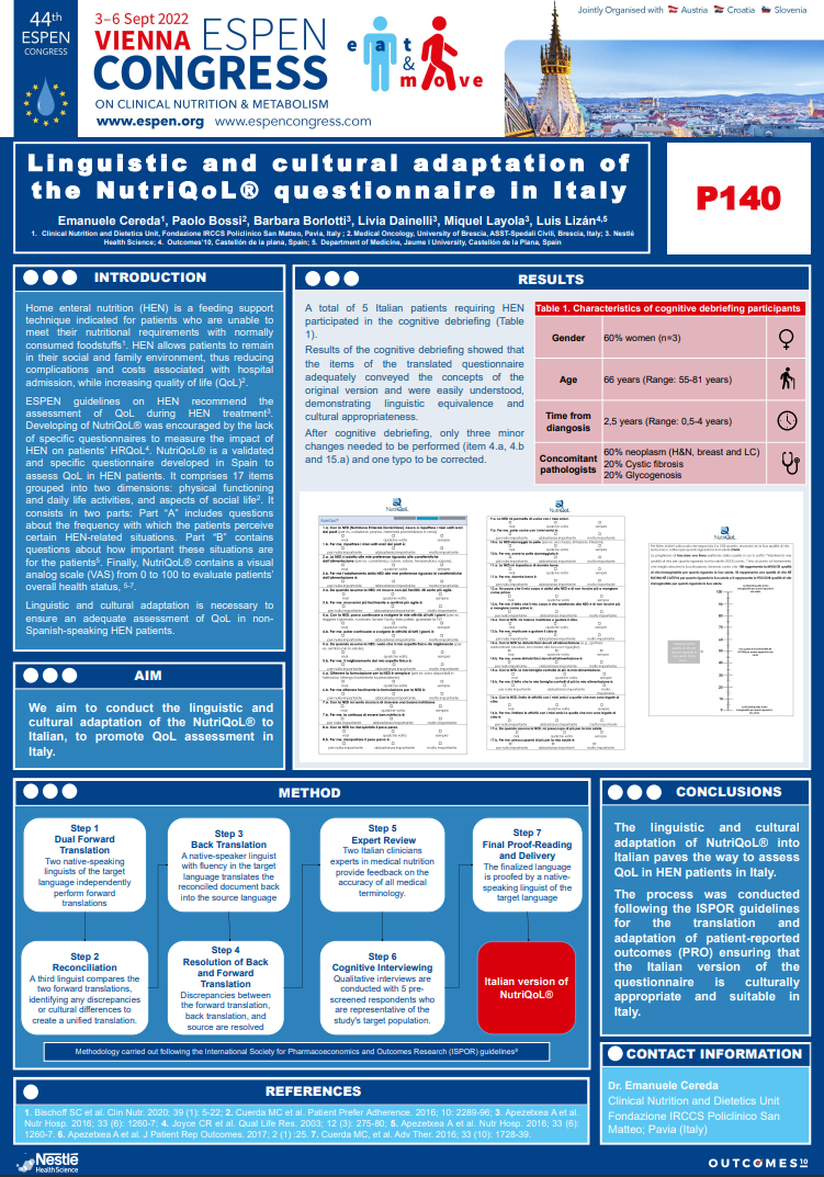 Translation and cultural adaptation to Italian of the health-related quality of life questionnaire for patients who receive home enteral nutrition (NutriQoL®)