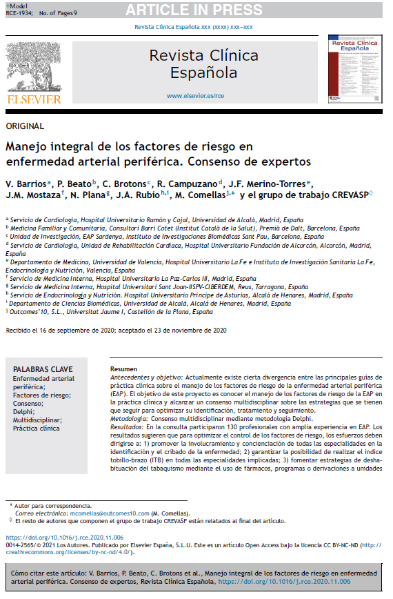 Multidisciplinary consensus using Delphi methodology, the objective of which is to understand the management of risk factors for peripheral arterial disease in clinical practice and to reach a multidisciplinary consensus on the strategies that must be followed to optimize their identification, treatment and follow-up.