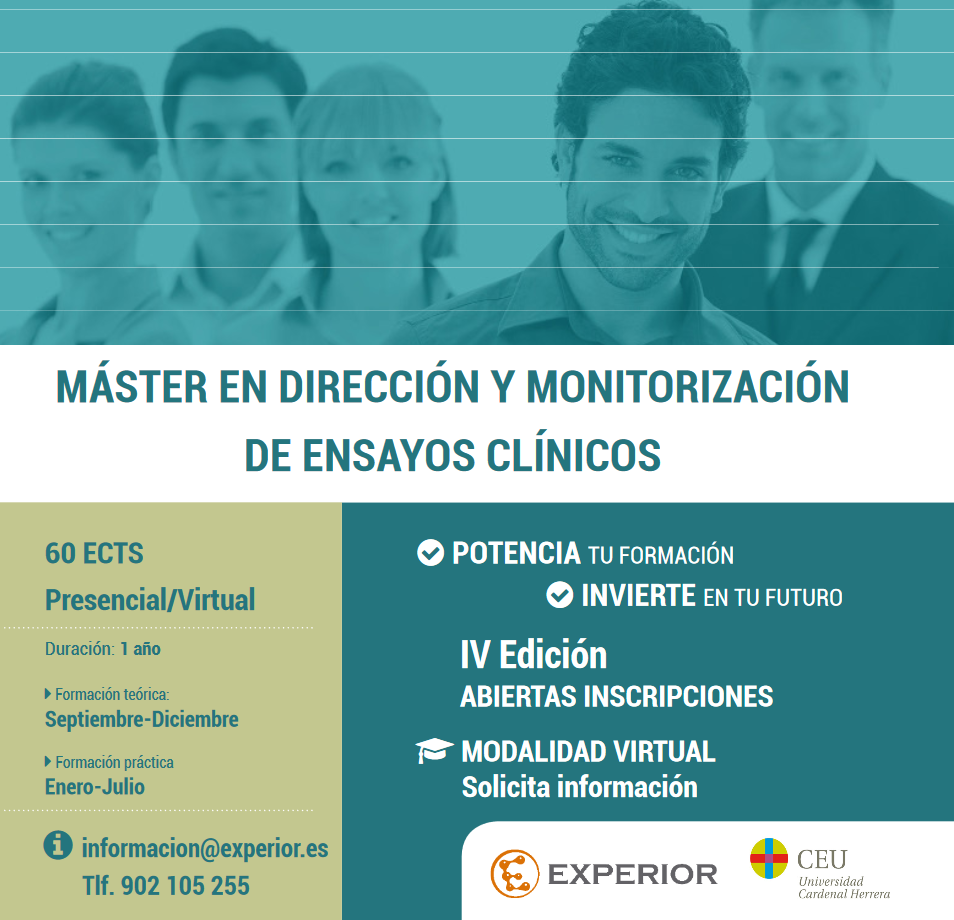 Training Máster en Dirección y Monitorización de ensayos clínicos (CEU Cardenal Herrera y Experior) Collaboration since the 1st Edition in 2013 teaching the module “Pharmacoeconomics, Market Access and Real World Evidence” Outside URL