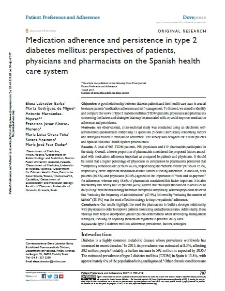 Medication adherence and persistence in type 2 diabetes mellitus: perspectives of patients, physicians and pharmacists on the Spanish health care system