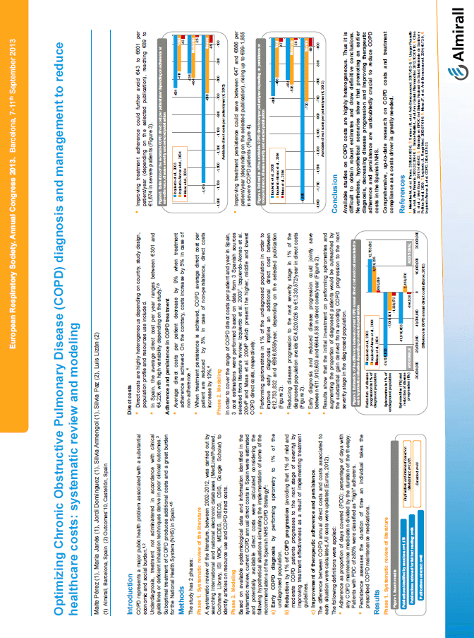Congress Optimizing chronic obstructive pulmonary disease (COPD) diagnosis and management to reduce healthcare costs: systematic review and modeling Authors: Pérez M, Janés M, Domínguez J, Armengol S, Paz S, Lizán L Year: 2013 Congress: European Respiratory Society (ERS)