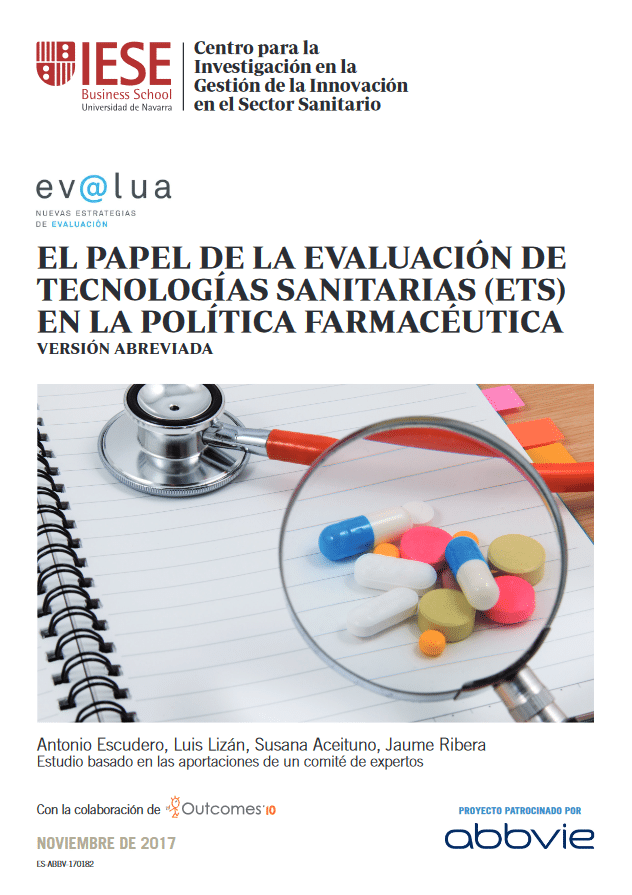Articles El papel de la Evaluación de las Tecnologías Sanitarias (ETS) en la toma de decisiones sobre política farmacéutica Authors: Escudero, A, Lizán, L, Aceituno, S, Ribera, J Journal: IESE Insight Year: 2017 Outside URL