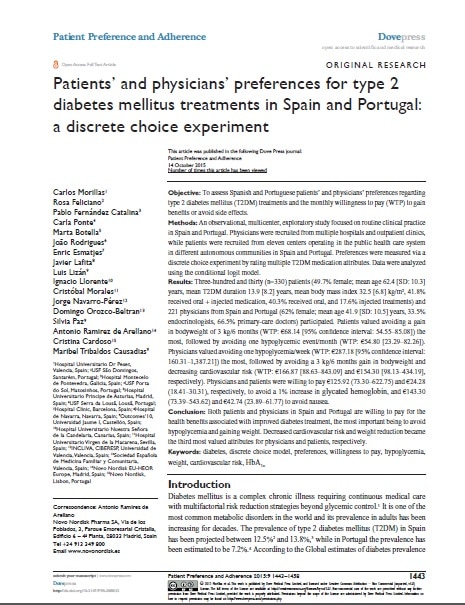 Authors: Morillas C, Feliciano R, Fernández Catalina P, Ponte C, Botella M, Rodrigues J, Esmatjes E, Lafita J, Lizán L, Llorente I, Morales C, Navarro-Pérez J, Orozco-Beltran D, Paz S, Ramírez de Arellano A, Cardoso C, Tribaldos Causadias M