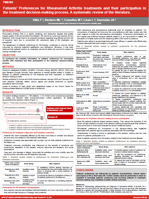 Congress Patients’ Preferences for Rheumatoid Arthritis treatments and their participation in the treatment decision-making process. A systematic review of the literature