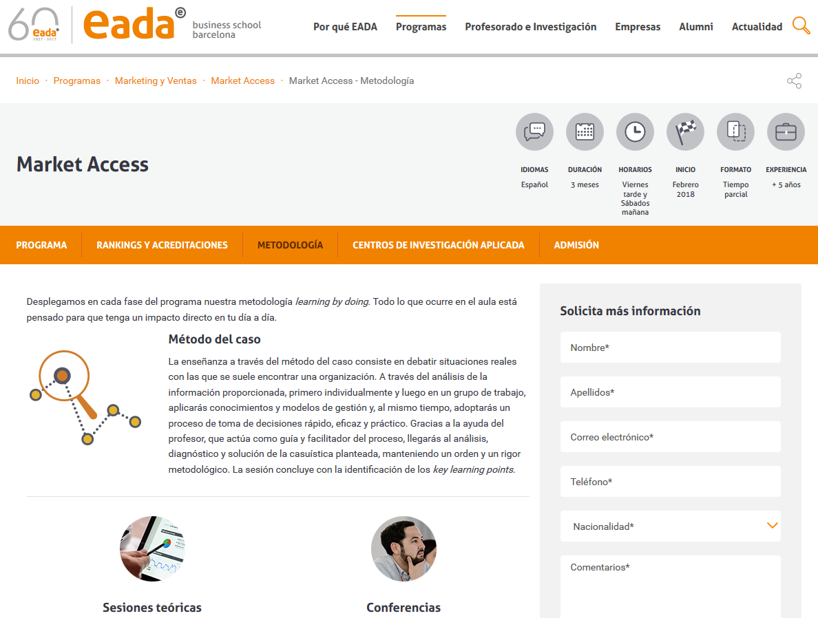 Training Programa de Market Access (EADA Business School Barcelona) Colaboración desde el año 2014 en el módulo Lectura Crítica de la Evidencia Científica Outside URL