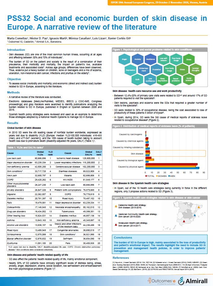 Congress Social and economic burden of skin disease in Europe. A narrative review of the literature Authors: Comellas M, de Paz HD, Marti I, Casañas M, Lizán L, Cortés X Year: 2016 Congress: ISPOR 19th Annual European Congress Download PDF