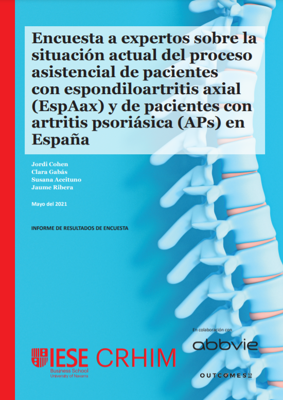 Articles Survey of experts on the current situation of the care process of patients with axial spondyloarthritis (AxSpA) and of patients with psoriatic arthritis (PsA) in Spain Authors: Jordi Cohen, Clara Gabás, Susana Aceituno, Jaume Ribera Year: 2001 Outside URL