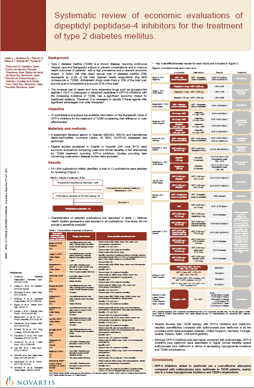 Congress Systematic review of economic evaluations of dipeptidyl peptidase-4 inhibitors for the treatment of type 2 diabetes mellitus Authors: Lizán L, Aceituno S, Franch J, Pérez A, Granell M, Fuster E Year: 2014 Congress: ISPOR 17th Annual European Congress