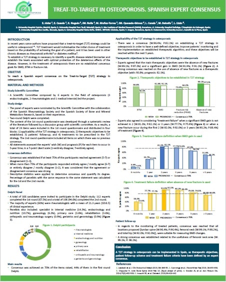 Congress Treat-to-target in osteoporosis. Spanish Expert Consensus Authors : Jódar E, Casado E , Nogués X, Nolla JM, Muñoz-Torres M, Quesada-Gómez JM, Canals L, Balcells M, Lizán L Year: 2016 Congress: World Congress on Osteoporosis, Osteoarthritis and Musculoskeletal Diseases (WCO-IOF-ESCEO) Download PDF