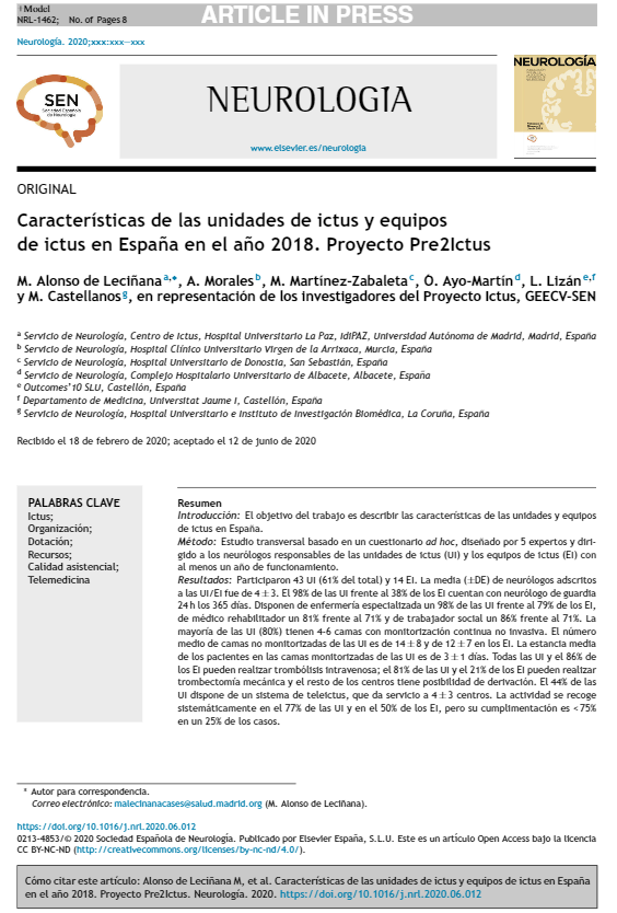 Características de las unidades de ictus y equipos de ictus en España en el año 2018. Proyecto Pre2Ictus