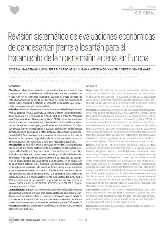 Revisión sistemática de evaluaciones económicas de candesartán frente a losartán para el tratamiento de la hipertensión arterial en Europa