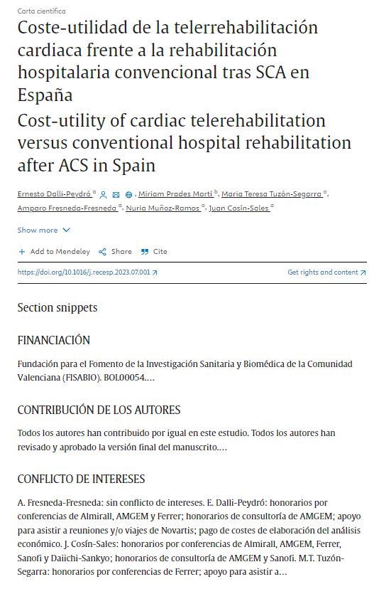 Coste-utilidad de la telerrehabilitación cardíaca frente a la rehabilitación hospitalaria convencional tras síndrome coronario agudo en España
